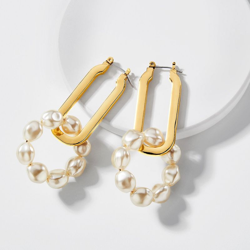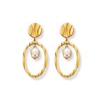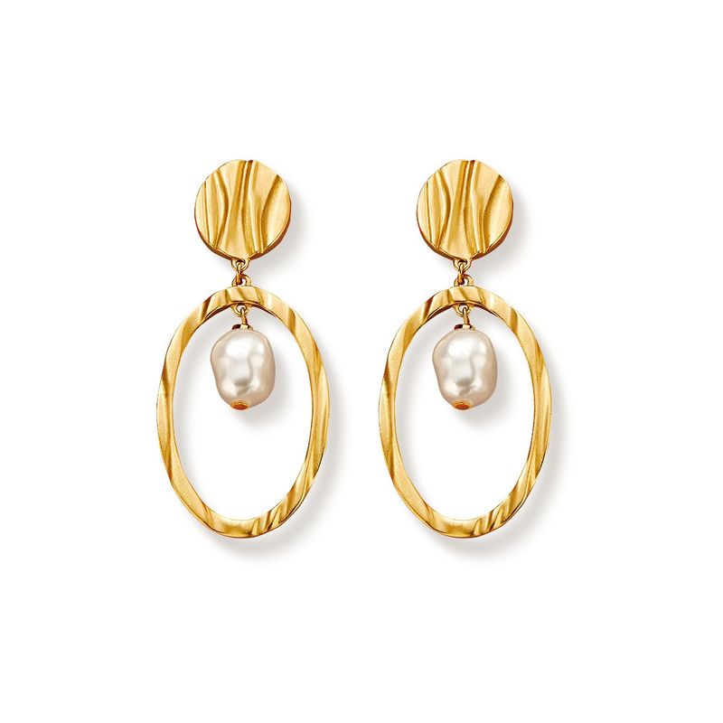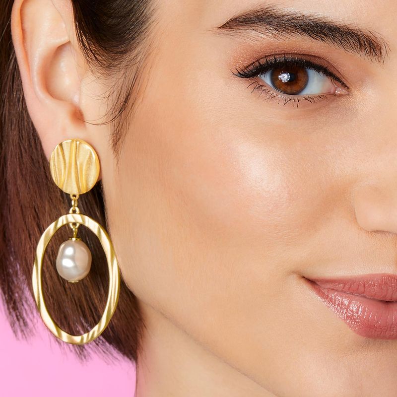 Pendientes para mujer bañados en oro brillante y mate de 24k con perlas.